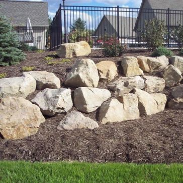 Large Outcropping Boulders are oversize stone used for retaining walls, ponds, waterfalls and landscape accents. Boulders are quarried in Wisconsin.